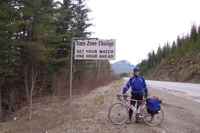 First, Dave acquired a slow leak in his back tire that we simply re-inflated several times in order to travel the last few kilometres until we reached a gas station in Golden. Once we arrived in Golden we changed the tube and then began to inquire about a place to stay in Field. A few phone calls revealed that there were indeed accommodations available in Field, and thus it became our goal to reach Field before sunset. Although we had left early this morning, we changed timezones along the way resulting in losing an hour.