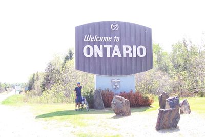 We're finally here! After one month of riding, we have finally crossed into the province of Ontario. We had a great night last night at Falcon Lake, which will just add to the fond memories I have of passing through Manitoba. The only problem was that Dave once again fell asleep without writing his daily journal entry, and thus he woke up at 4am to do his writing. Inevitably, I woke up as well, which led to a fitful night of sleeping.
