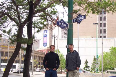 Regardless, we arrived in Portage la Prairie early this morning and stopped for a quick lunch at Tim Hortons. I then called dad, telling him that we may be in Winnipeg a little early since it was only noon and we had a mere 66km left... or so we thought! We also stopped at the Wal-Mart in Portage la Prairie to find a small set of speakers for our walkman/discman - something we have been talking about for a while.